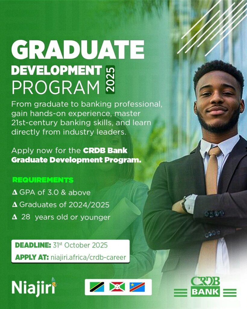 CRDB Bank invites high-potential graduates to apply for the Graduate Development Program 2025 - a structured training initiative designed to nurture future leaders and professionals within the banking sector.